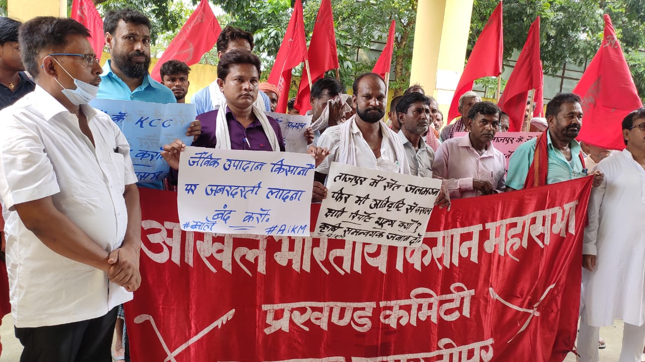 लगातार वर्षा के बाबजूद बड़ी संख्या में किसान कोल्ड स्टोरेज चौक जुटकर अपने- अपने हाथों में झंडे, बैनर एवं नारे लिखे तख्तियां लेकर जुलूस निकाला जो विभिन्न मार्गों से चलकर नारे लगाते हुए प्रखण्ड कार्यालय स्थित कृषि कार्यालय पहुंचा। आक्रोशित किसानों ने घंटों कार्यालय को घेरकर जमकर प्रदर्शन किया।