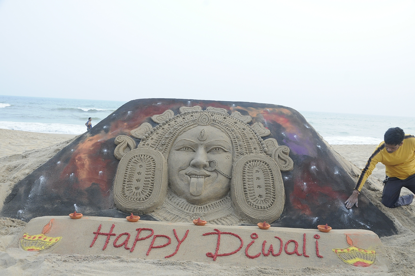 श्री मानस साहू ने पुरी लाइट हाउस के पास पुरी समुद्र तट पर देवी काली की एक मूर्ति रेत की मूर्ति बनाई है।
