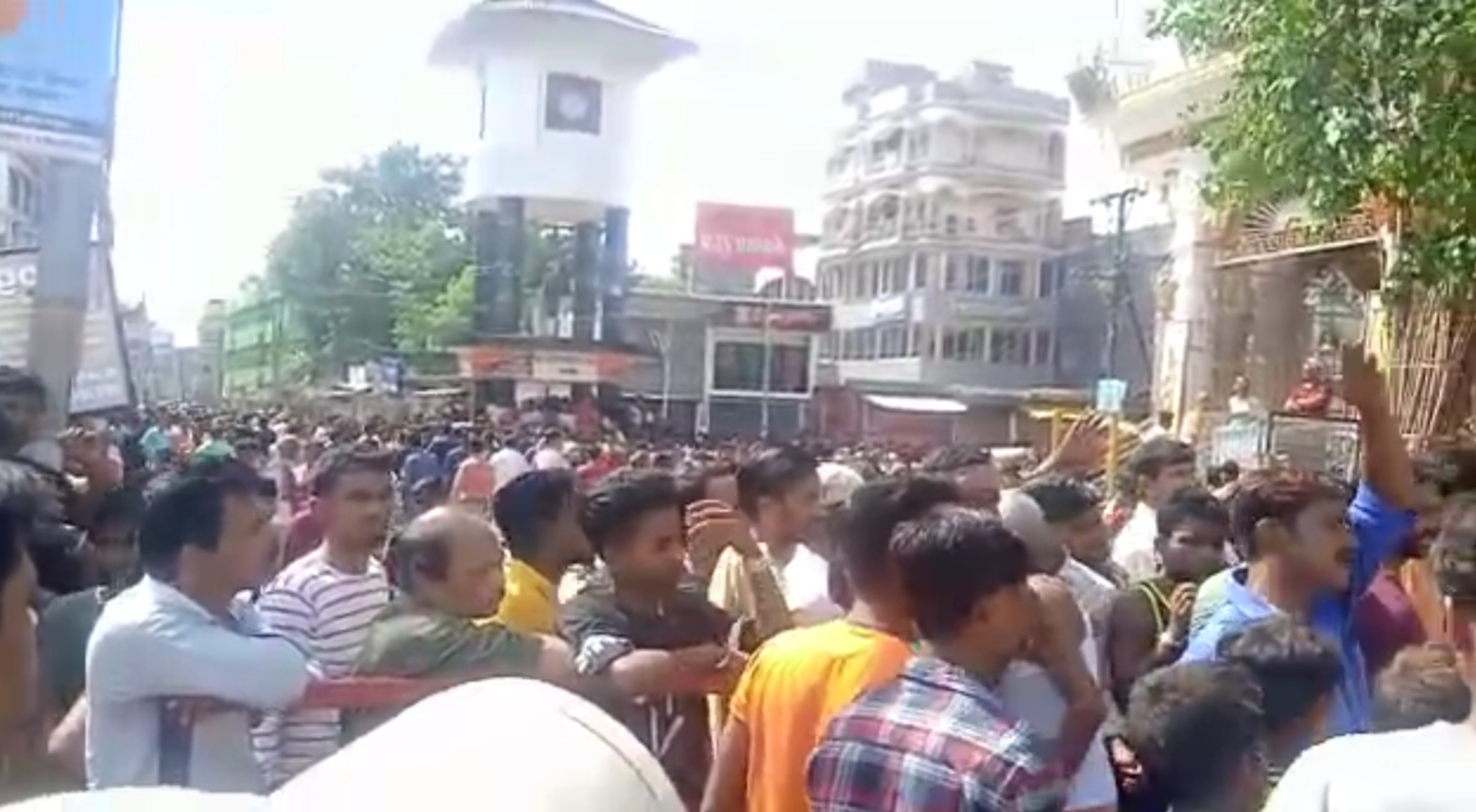 मूर्ति विसर्जन नहीं करने देने व मारपीट कर हाजत में बंद कर दिये जाने को लेकर हजारों आक्रोशित लोगों की भीड़ ने विरोध प्रदर्शन कर दोषी पुलिसकर्मियों को दण्डित करने की मांग की