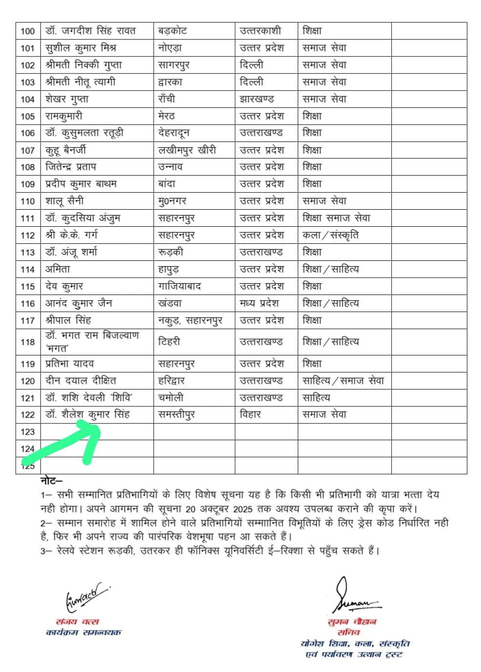 'फोनिक्स यूनिवर्सिटी' रुड़की (उत्तराखंड), व योगेश शिक्षा, कला, संस्कृति, पर्यावरण उत्थान ट्रस्ट द्वारा किया जाएगा सम्मानित