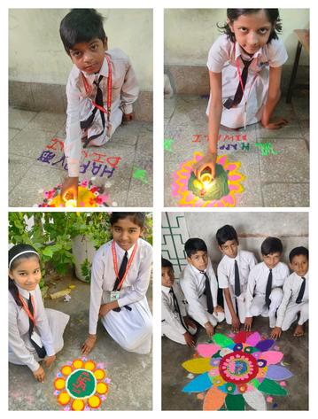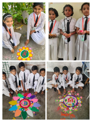 शिक्षकों के साथ मिलकर छात्र -छात्राओं ने धनतेरस के अवसर बनाया रंगोली